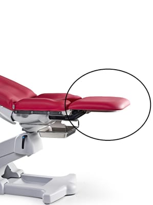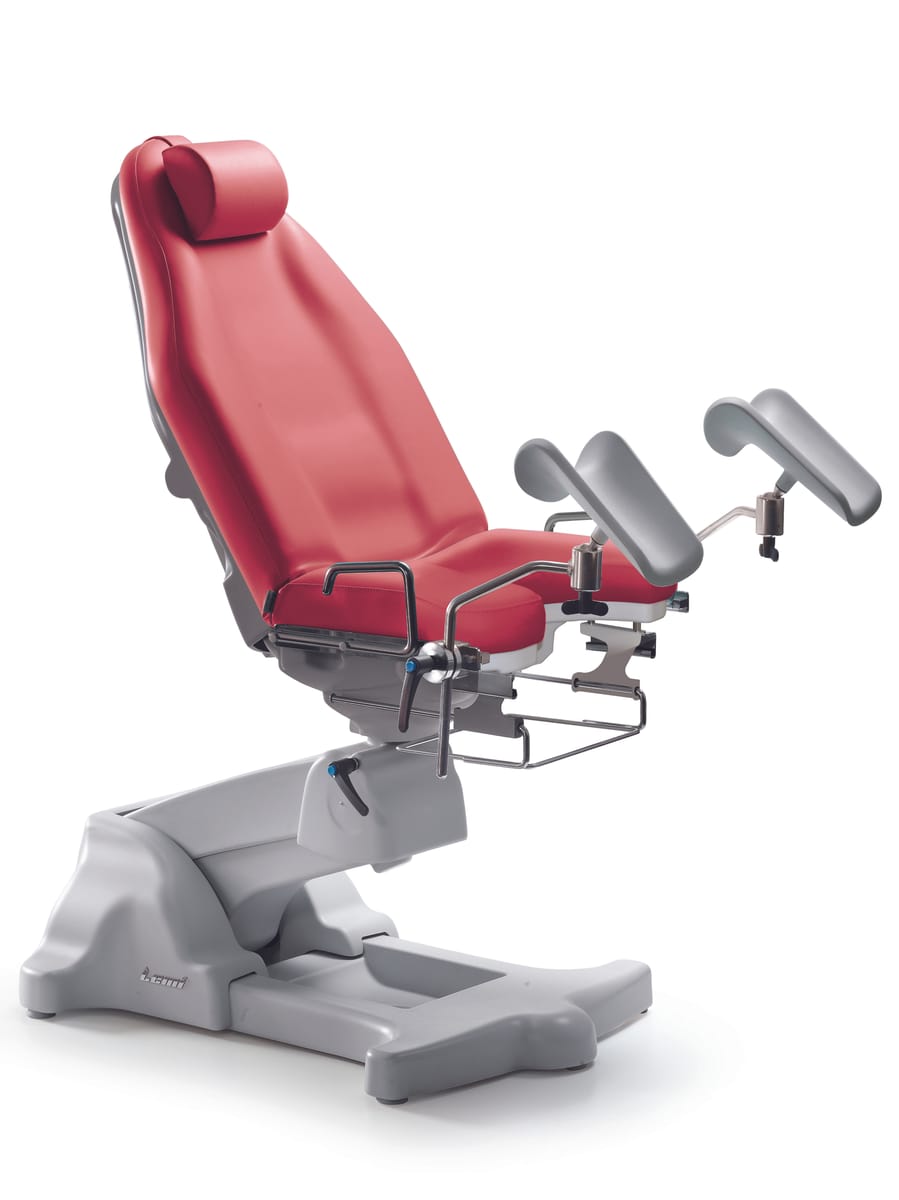 Гинекологичният стол е снабден с три напълно безшумни мотора с голяма товароносимост. Движенията се контролират чрез крачен ел. педал. Педалът за контрол на движенията има възможност за запаметяване на 2 работни позиции и има бутон за край на процедура, който сваля пациента най-ниско за комфортно слизане на пациента.