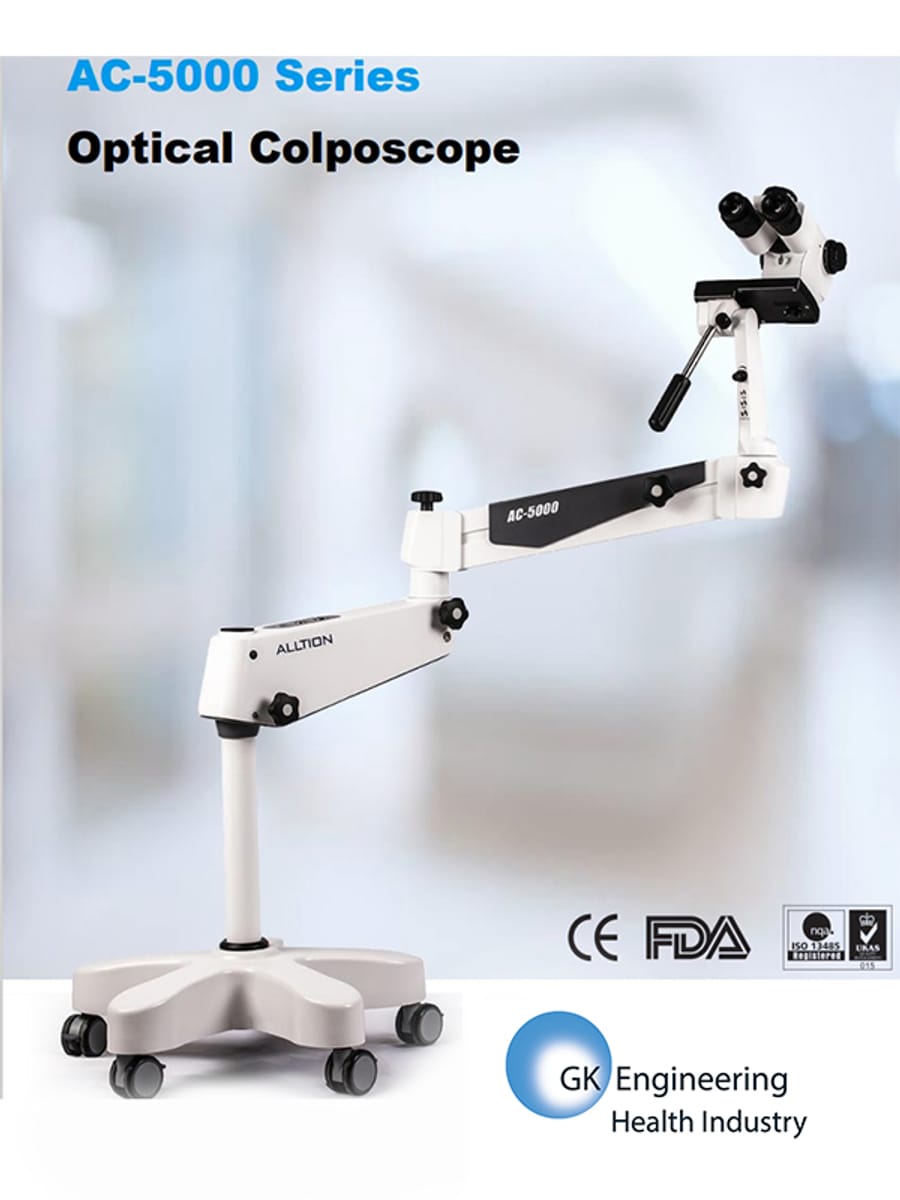 Колпоскоп серия AC-5000 – Alltion, Китай – Най- новият модел колпоскоп от най- висок клас с вградена 4 К камера с двойно по-голяма резолюция от AC серията и регулируемо фокусно разстояние