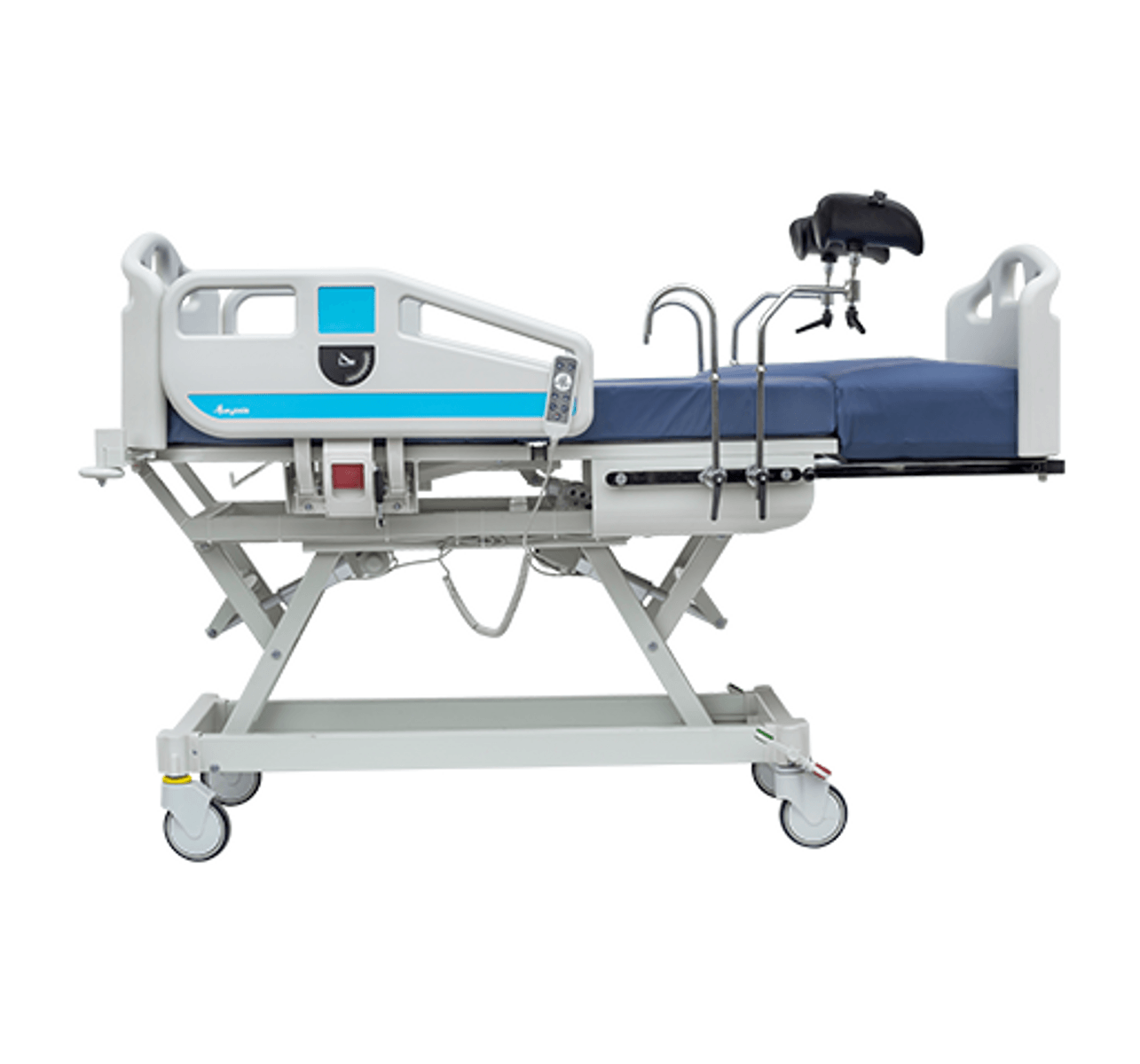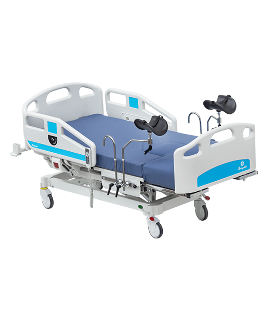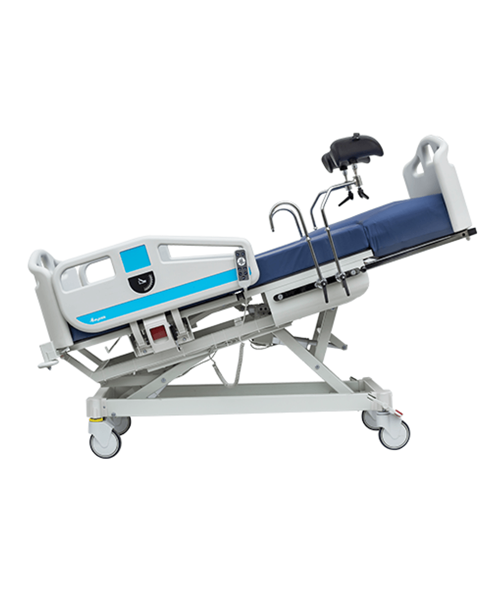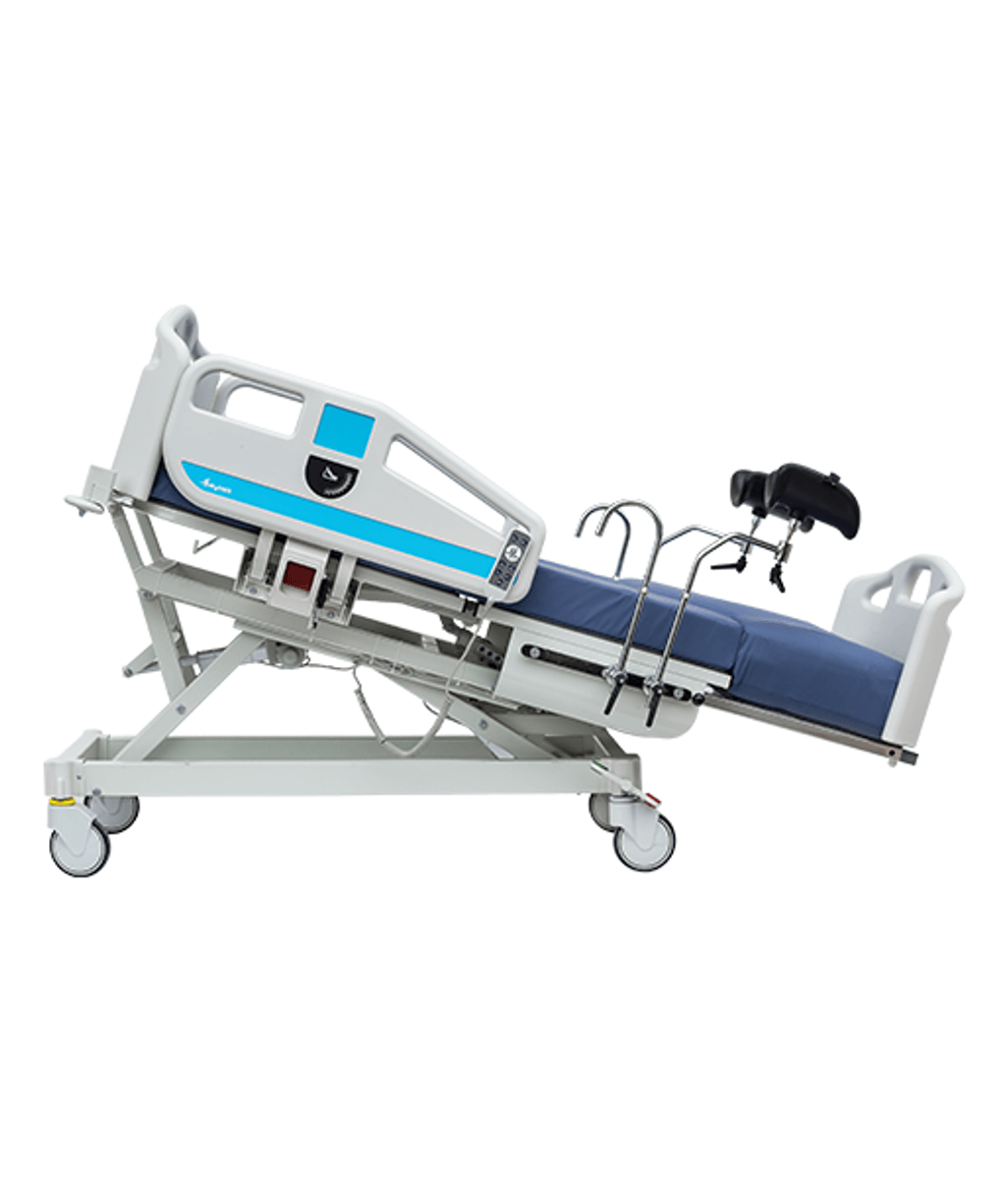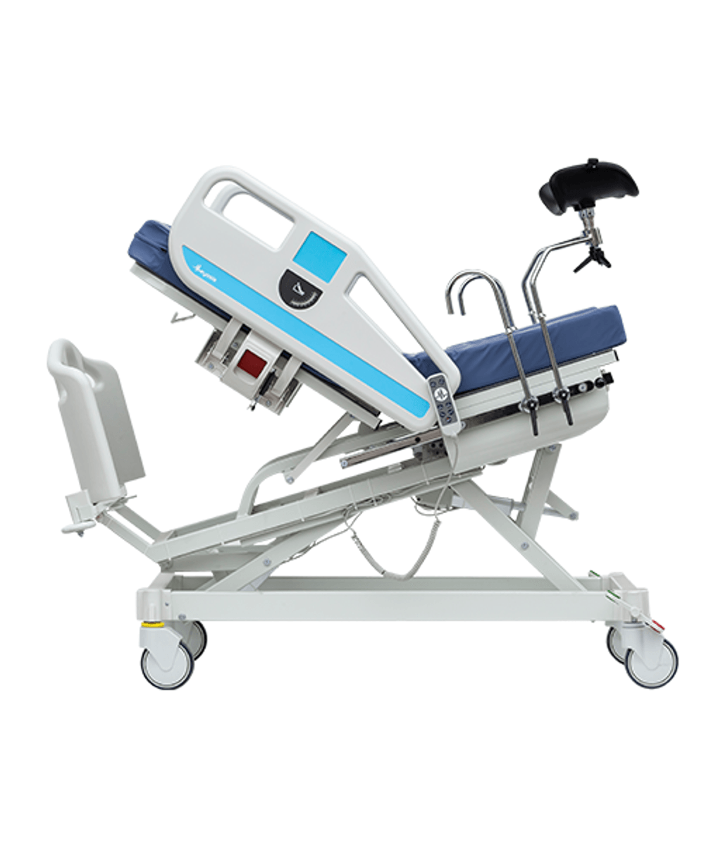 Проектирано като болнично легло, което лесно се трансформира в родилно, чрез прибиране на секция крака под конструкцията